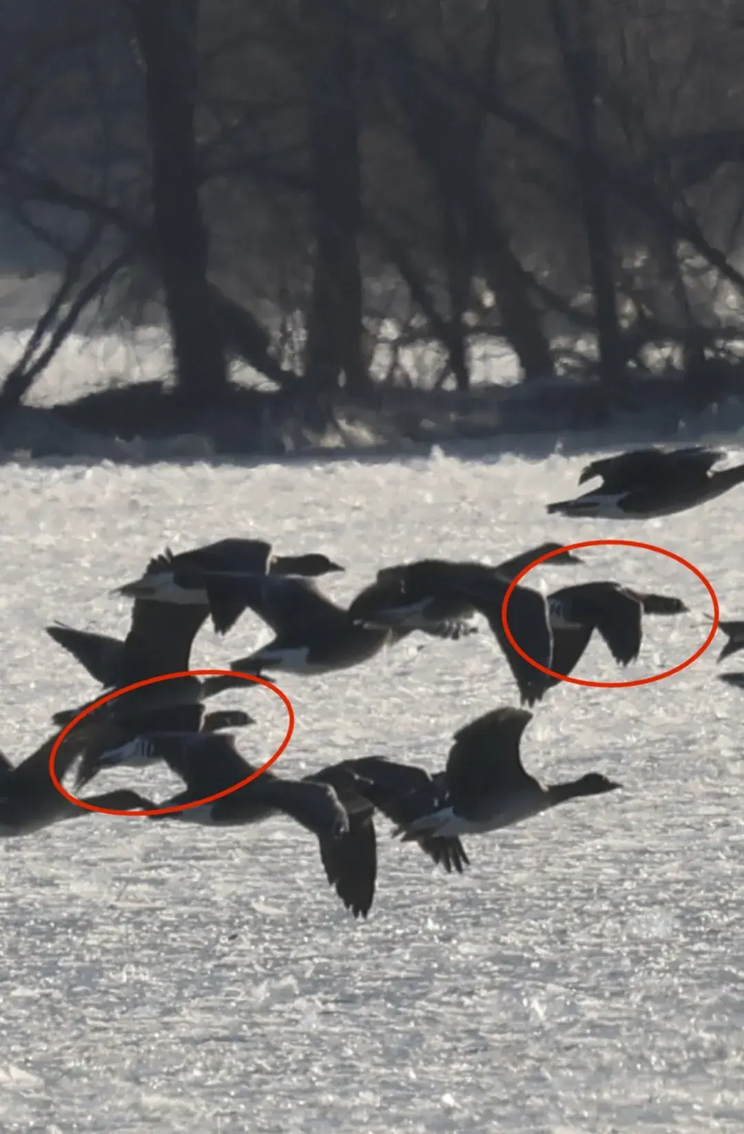 12月2日,北京市延庆区自然保护地管理处科研监测科工作人员在整理日常监测影像时,收获了一份特殊的“年终惊喜”。一组豆雁群照片中,3只体型稍小、羽色特征迥异的个体引起了工作人员的注意。经详细比对与专家确认,鉴定该鸟为国家二级保护野生动物、北京市首次记录到的红胸黑雁。这一发现,标志着北京市鸟类名录再次被刷新。