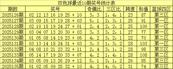 双色球第2025135期开出奖号:01 02 05 09 25 32 + 10。其中红球三区比为4:0:2,和值为74,奇偶比为4:2,跨度为31,蓝球出现在第三区。