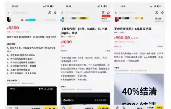 闲鱼现在到处都有这种广告,说各大银行都可打折还款,最高能省六成。他们要用户提供身份证、手机卡、征信报告,还得签18个月委托合同。有人信了交钱后,钱没还上,个人信息却泄露了,甚至被冒名贷款。